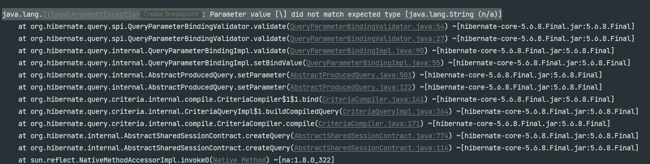 java.lang.IllegalArgumentException: Parameter value [\] did not match expected type [java.lang.String (n/a)]
