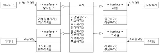 그래서 위처럼 남자라는 것을 각 역할에 맞게 잘 분리하면 역할과 책임이 알맞게 잘 분리된 것을 볼 수 있습니다.